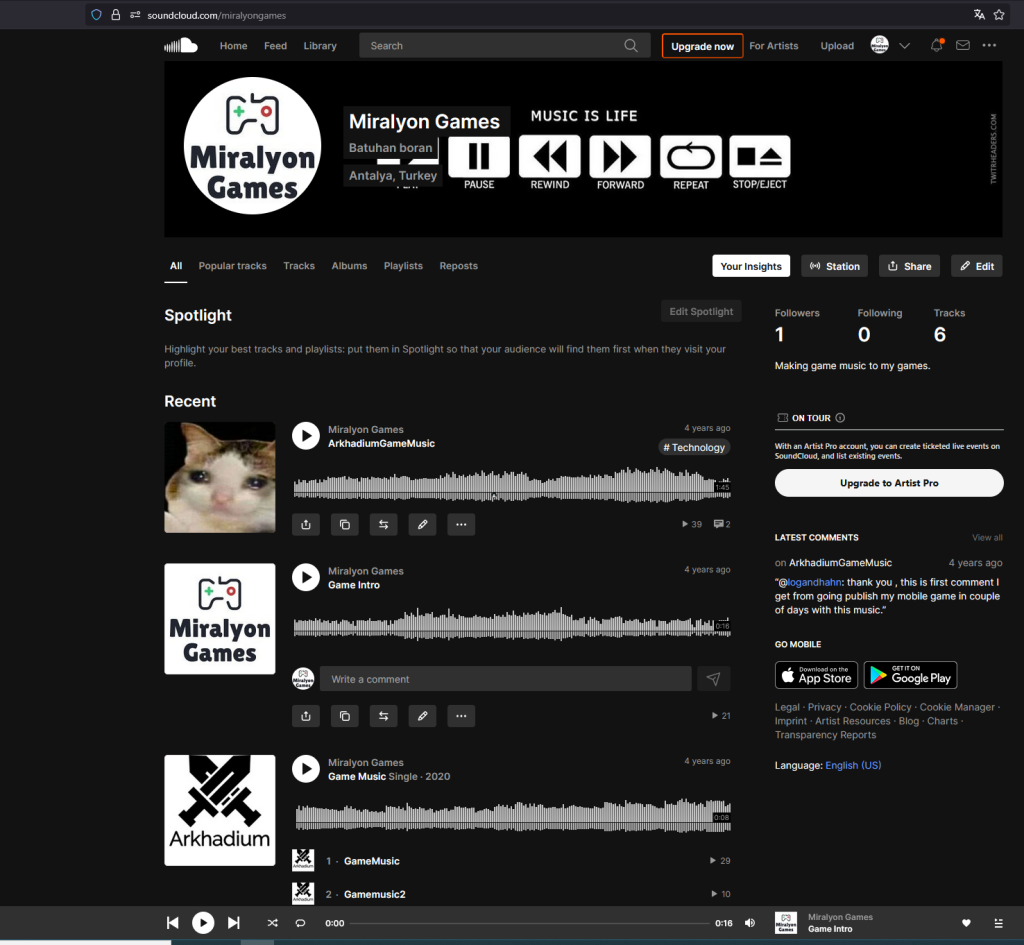 I also created game music that I uploaded to SoundCloud under “MiralyonGames” – unfortunately, that account got closed due to inactivity, but those tracks were some of my best creative work.